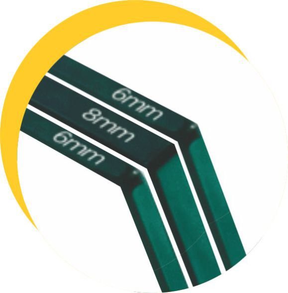Configuração: 1 Vidro Acústico de 6mm + Câmara de ar (entre os vidros) + 1 Vidro Acústico de 4mm.(total 2 vidros). Uma boa opção de isolamento.